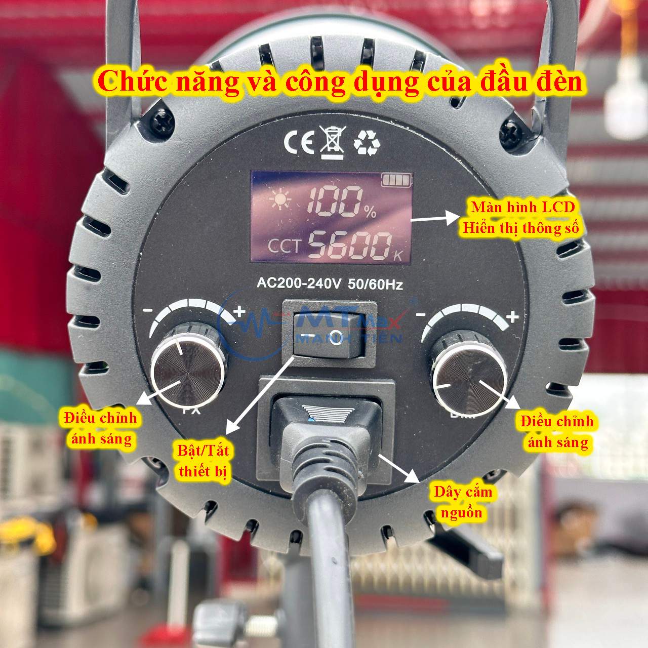 Một trong những tính năng nổi bật của đèn trợ sáng này là tích hợp nút bật/tắt thiết bị tiện lợi, giúp quý khách tiết kiệm thời gian và công sức trong việc vận hành. Không cần phải tìm kiếm công tắc nguồn phức tạp, chỉ cần nhấn một nút và bạn đã có ngay nguồn sáng mạnh mẽ để sáng tạo.