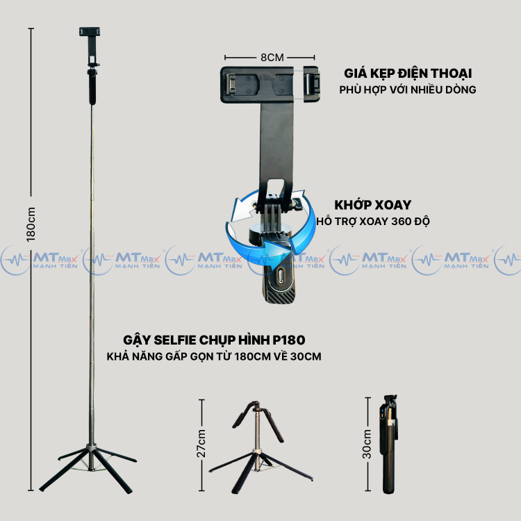 Phiên bản gậy chụp ảnh selfie P180 mới cuối năm 2023 đầu năm 2024, hiện tại đã cập bến cửa hàng Mạnh Tiến Studio. Vừa sử dụng làm gậy chụp ảnh, vừa dùng làm gimbal quay phim chống rung xịn xò, cùng tìm hiểu nhé!