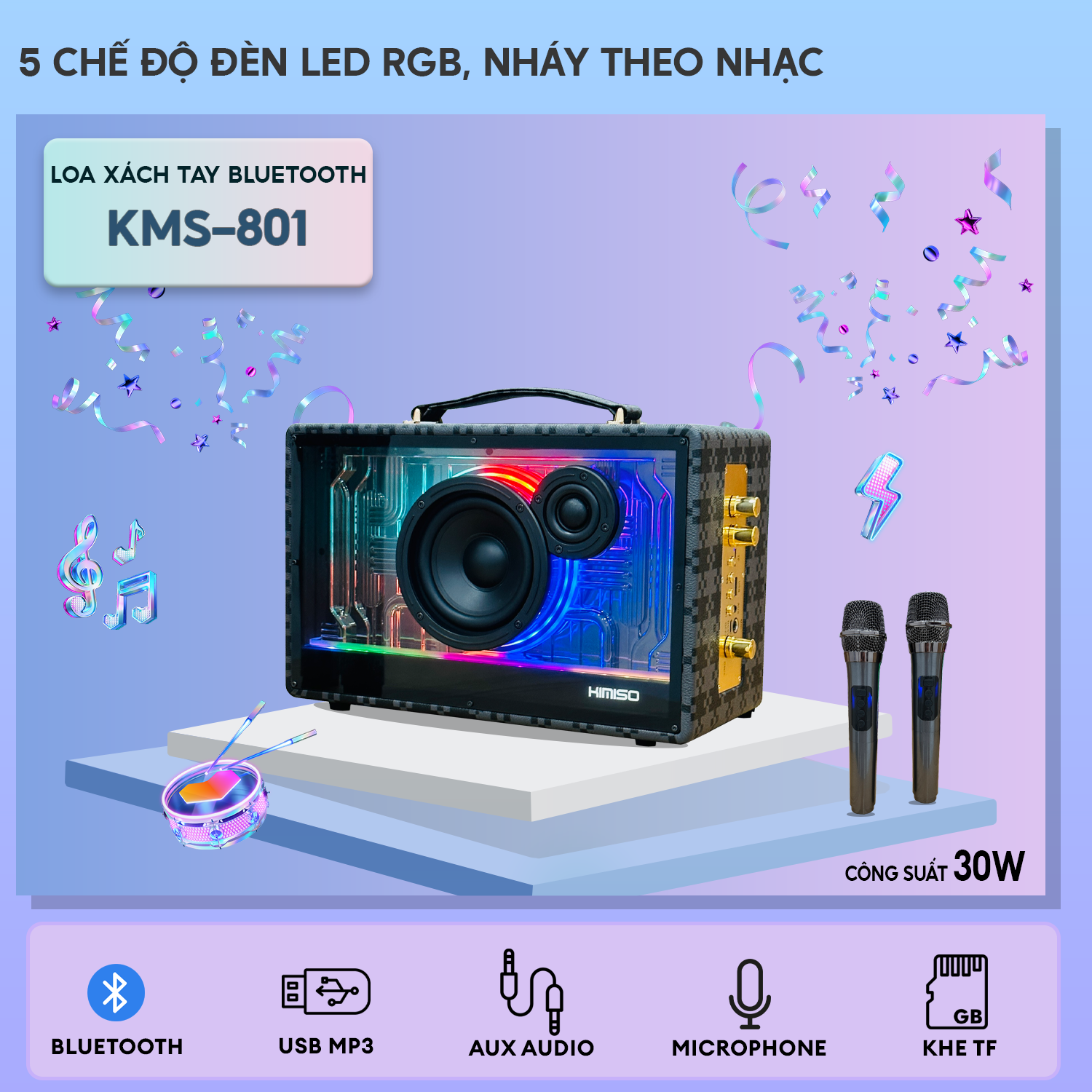 - Loa Xách Tay Kimiso KMS 801 - Âm Thanh Căng Chắc Mạnh Mẽ Chân Thực Sắc Nét Đèn Led RGB Độc Đáo