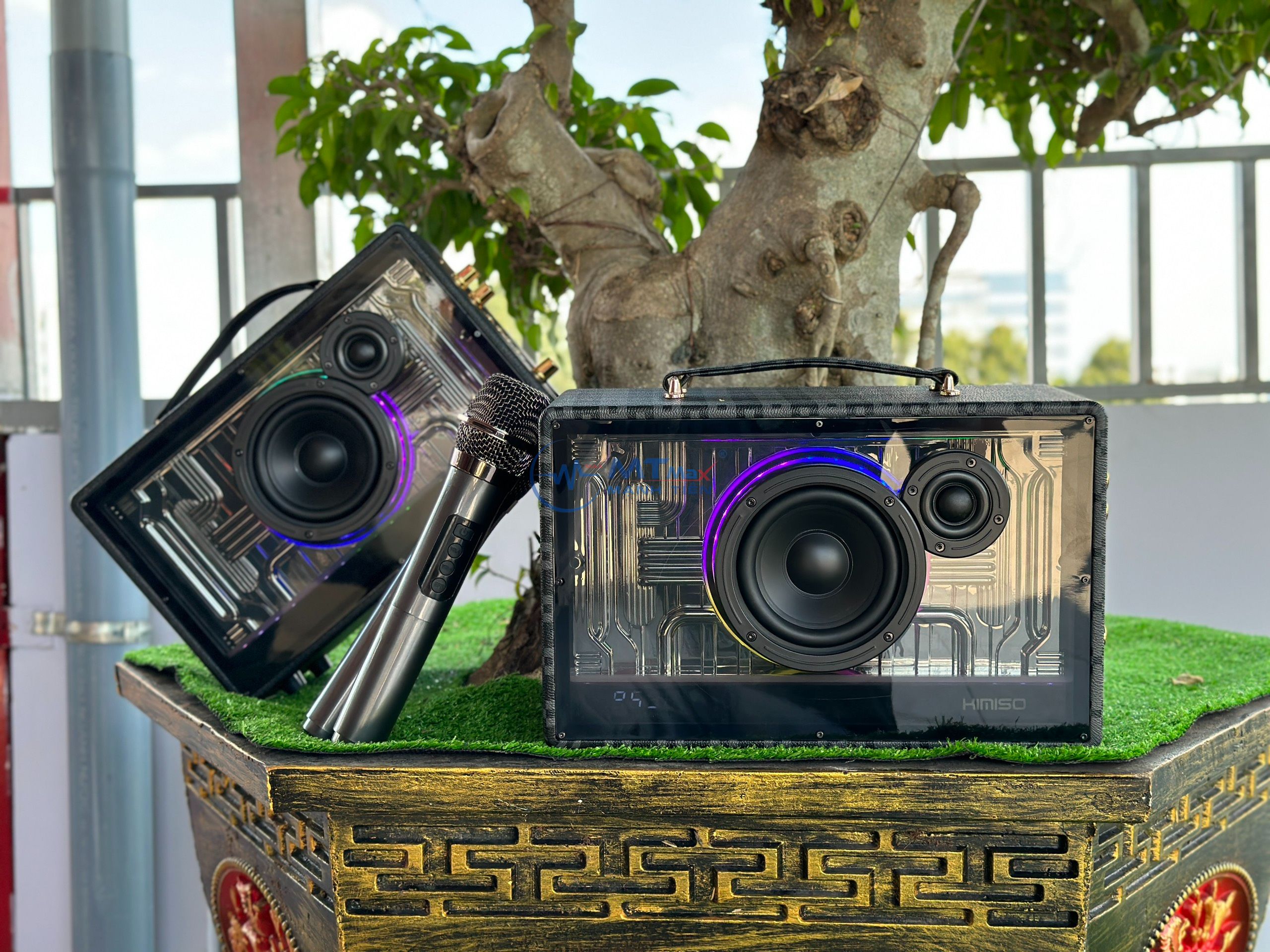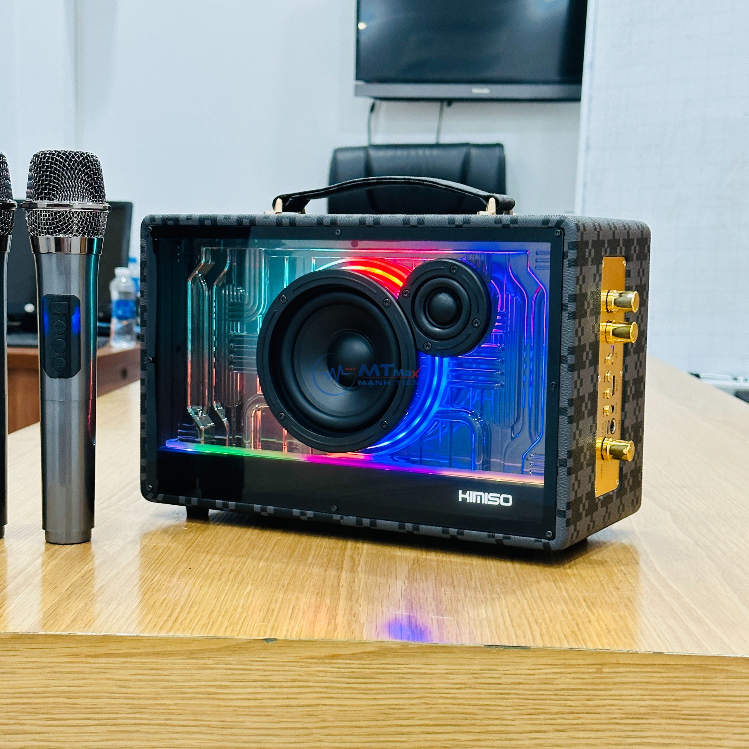 KMS 801 mang trong mình một thiết kế độc đáo với mặt trước trong suốt, tạo cảm giác hiện đại và mạnh mẽ. Sự kết hợp của loa bass và treble được thiết kế lộ ra ngoài không chỉ tạo ra âm thanh mạnh mẽ mà còn tạo điểm nhấn thú vị. Đèn LED RGB xung quanh loa có nhiều chế độ nhấp nháy, đặc biệt là chế độ nháy theo nhạc, tạo cảm giác sôi động và bùng cháy khi bạn nghe nhạc cùng bạn bè.