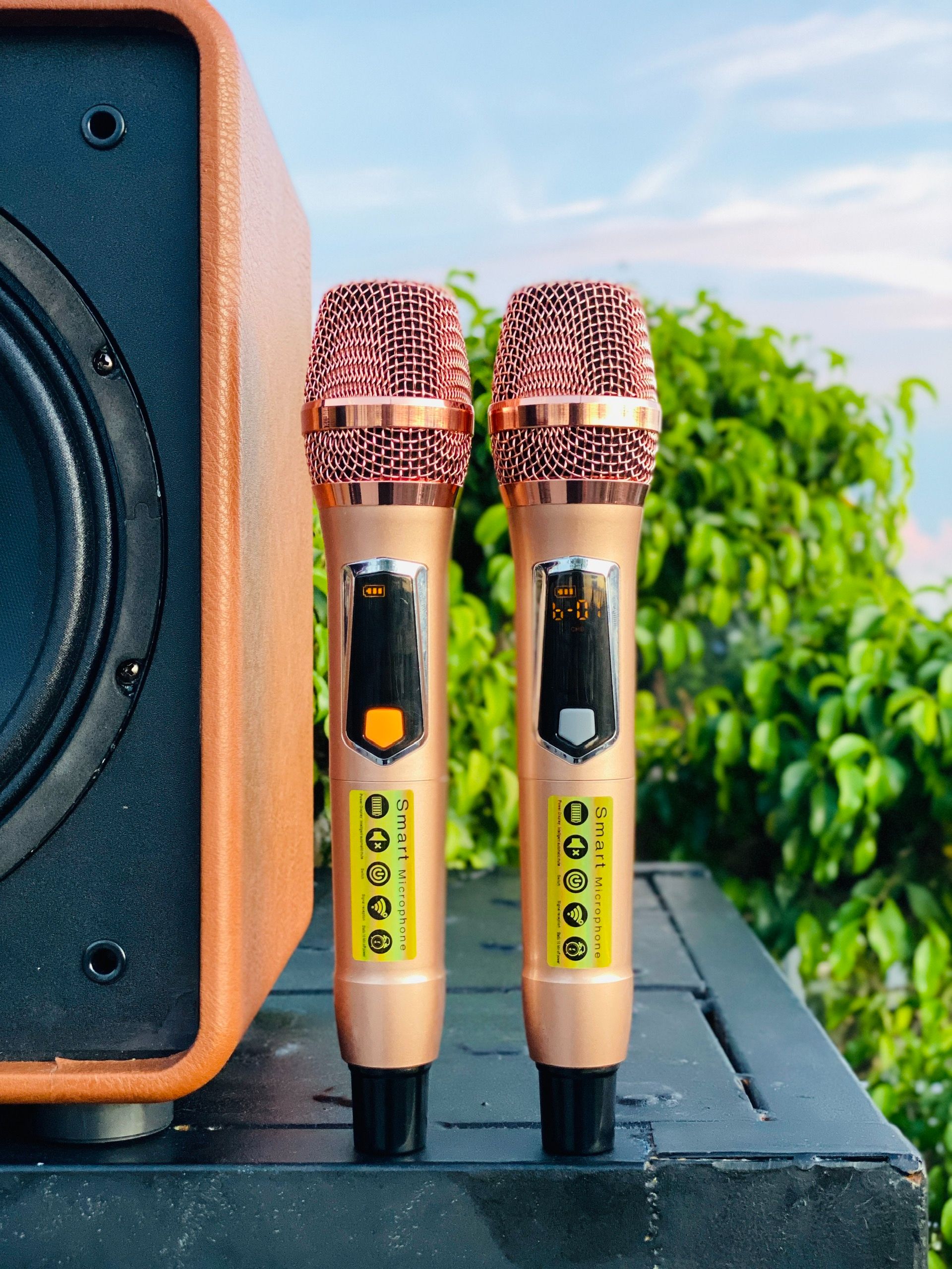 Được trang bị 2 micro không dây chất lượng cao cùng đầy đủ hiệu ứng ECHO, REVERB, BASS, MID, TREBLE giúp bạn dễ dàng karaoke thật hay với tiếng hát ngân vang bay bổng hơn.